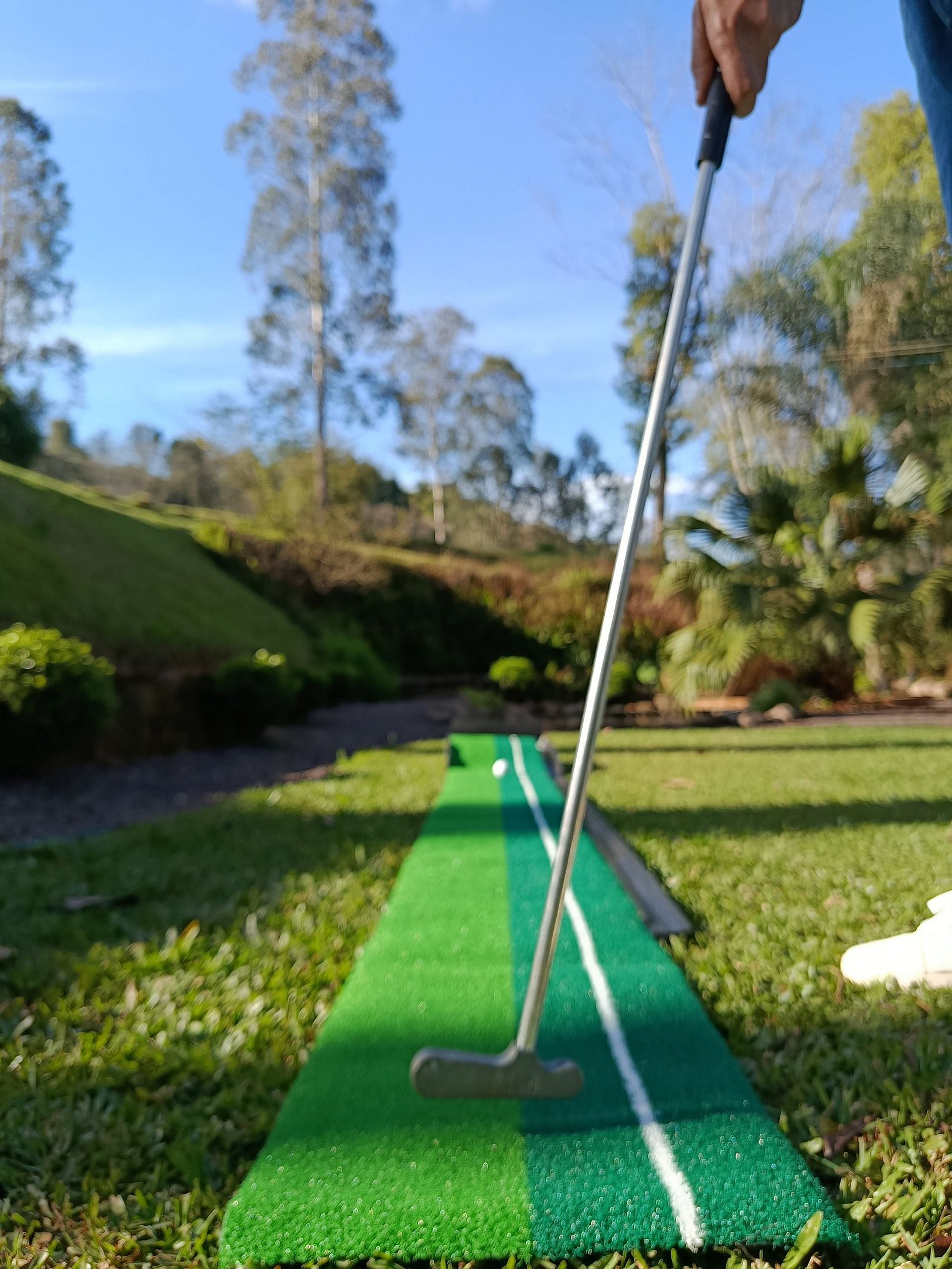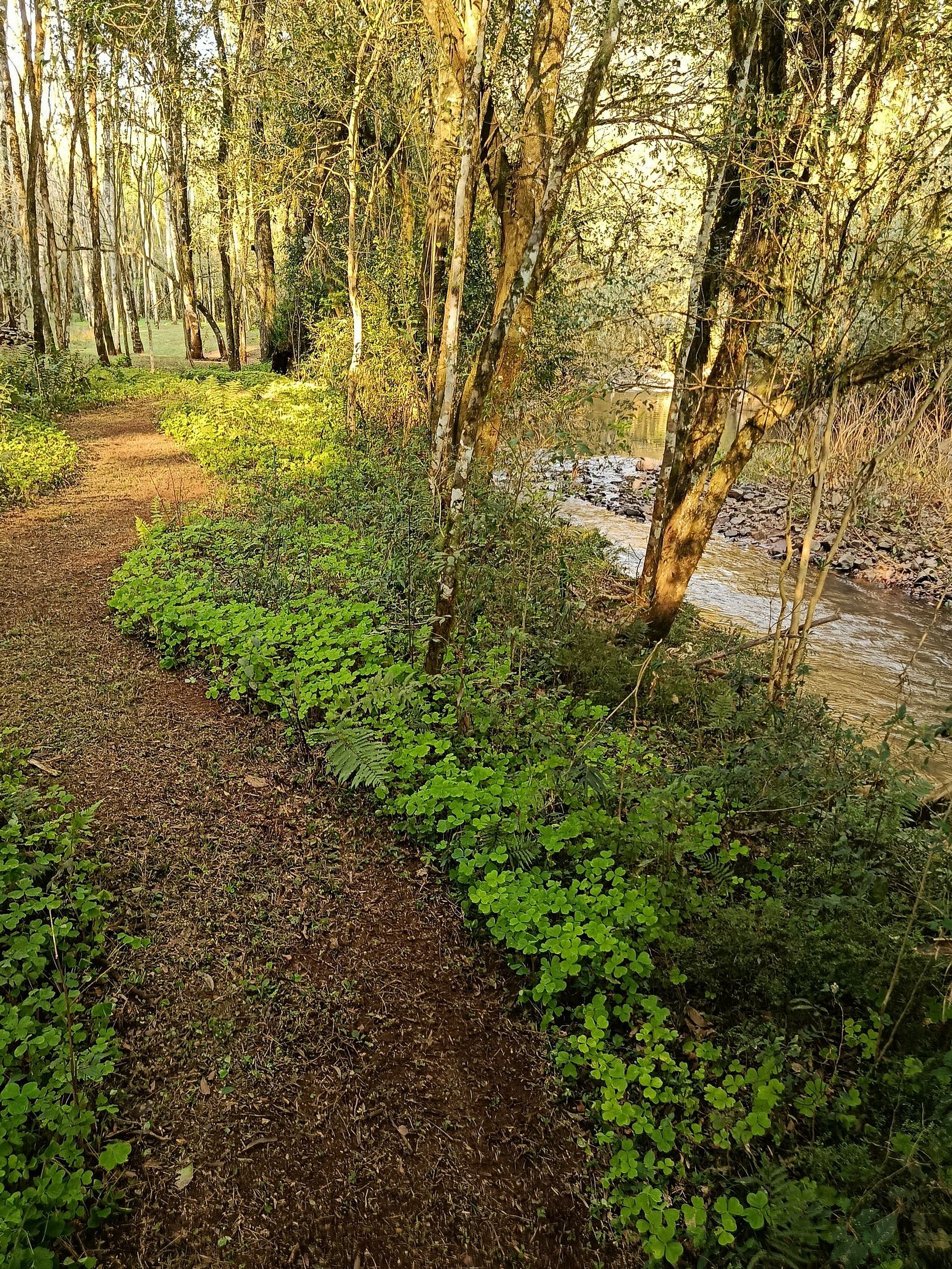 Um amplo gramado verde se estende ao redor da casa, convidando a momentos de relaxamento ao sol ou a brincadeiras despreocupadas. Integrado a este cenário, flores coloridas se misturam a folhagens de diversas texturas, com caminhos ornamentados guiando o olhar e os passos por entre a beleza natural. Ao cair da tarde, a área da fogueira se torna o ponto de encontro perfeito para aquecer as noites estreladas e compartilhar histórias. Trilhas discretas partem do jardim, convidando à exploração da mata circundante.